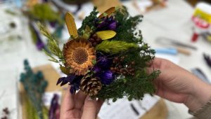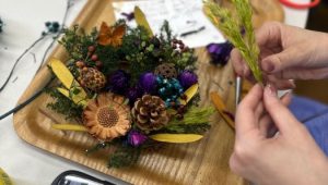 10月のレッスン「秋風リース」 秋風の躍動感と実のりの秋の色を表現…