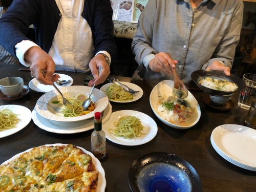 そして、パスタにカレーにピザ🍕をシェア。