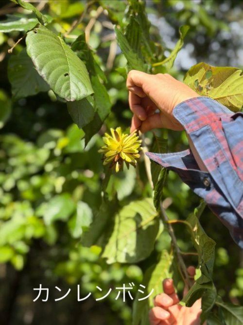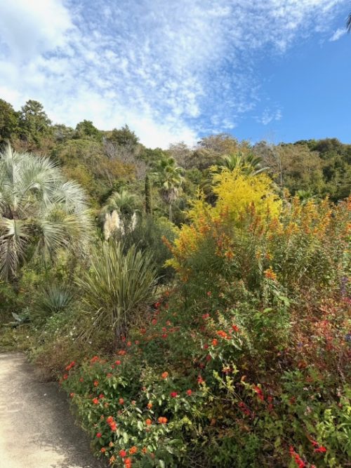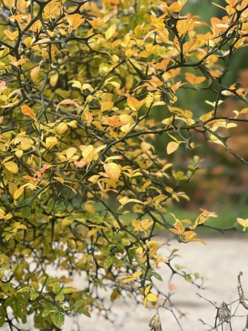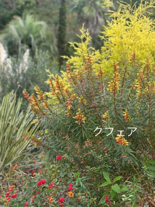ここのティーツリーの黄色→クフェアのオレンジと黄色→ランタナのオレンジと赤