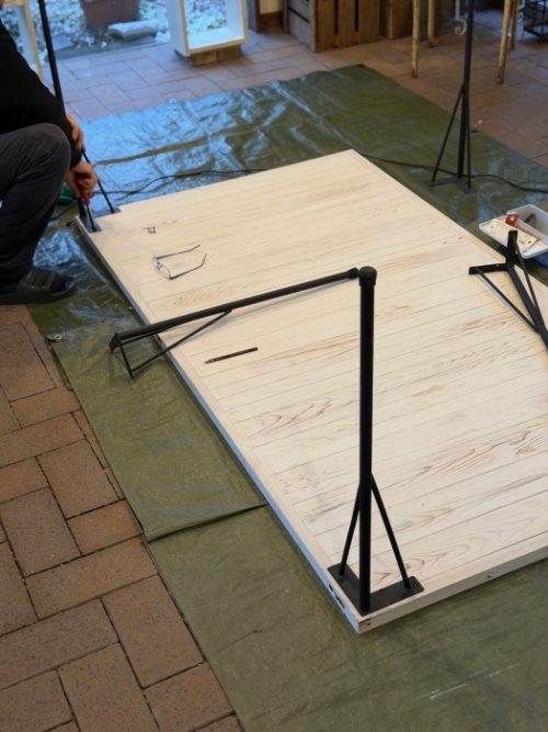 考えて、大きな天板に足をつけました。