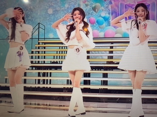 ILLITの衣装に、メンバーの顔写真入りのブローチが!!胸だったり腰だったりについてます