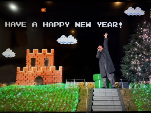 一昨年も蛇のぬいぐるみが頭に乗ってたり、今回は午を乗せてたりと、かわいい人なんですねー笑笑。