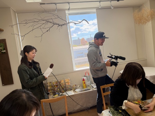テレビクルーの方々も「やりながらで構いません、お話し聞かせて下さい笑笑」