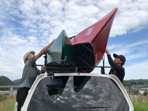 結局、カヌーを道まで運ぶことになりました。(私は、見てるだけですが、、、笑)
