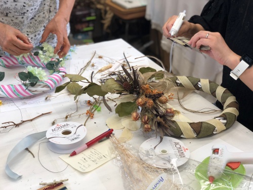 シックな色合いのリースが多い中、キレイな色のリースを見ると 逆にホッとしてしまいます。