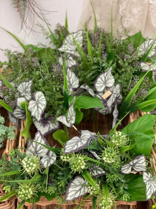 ハンギングに寄せ植えをしたような、デザインにしました。
