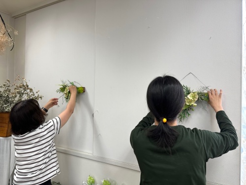 7月のレッスン「トロピカルグリーンアレンジ」始まりました。