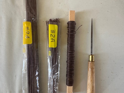 持ち物は、24番と26番ワイヤー、リースワイヤー、目打ちは、必要。