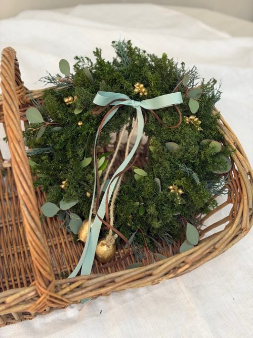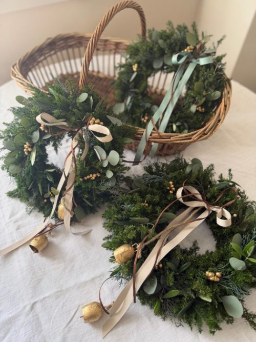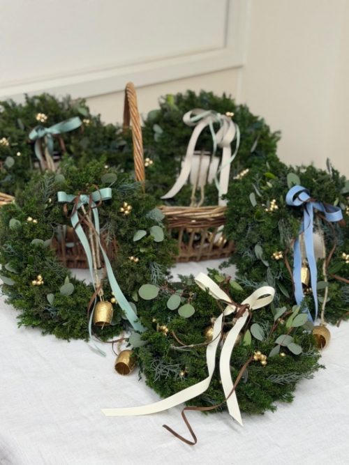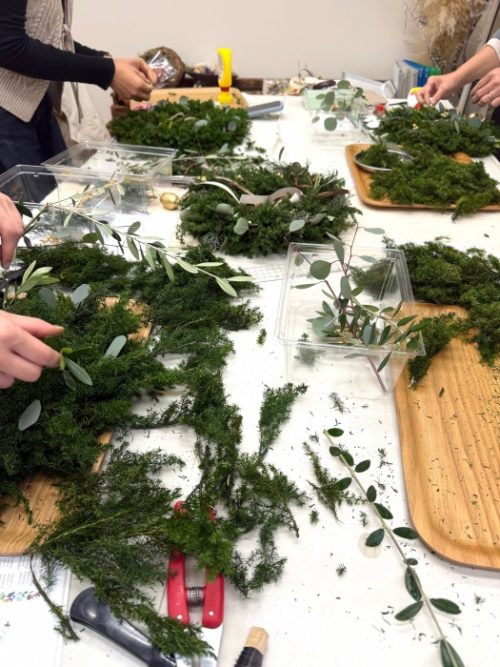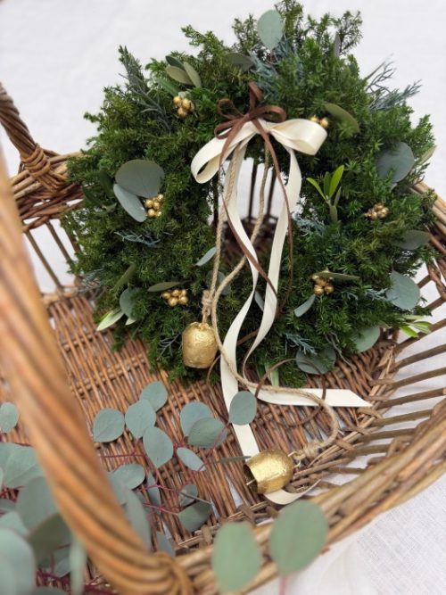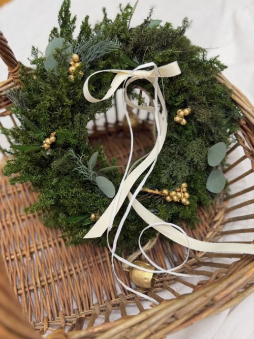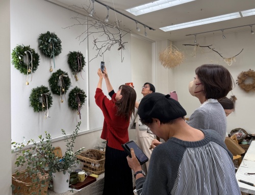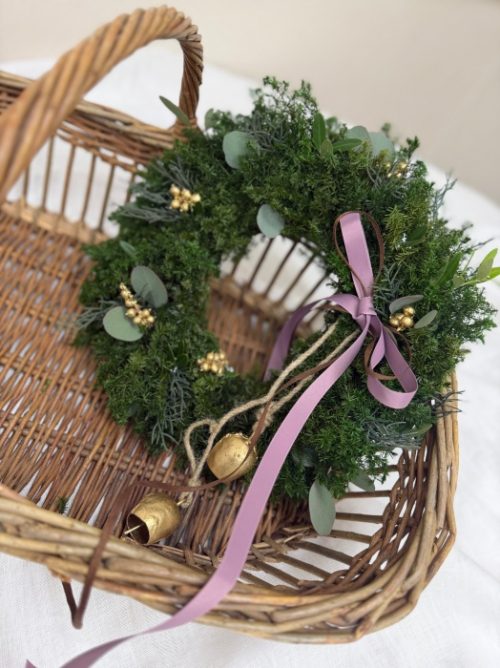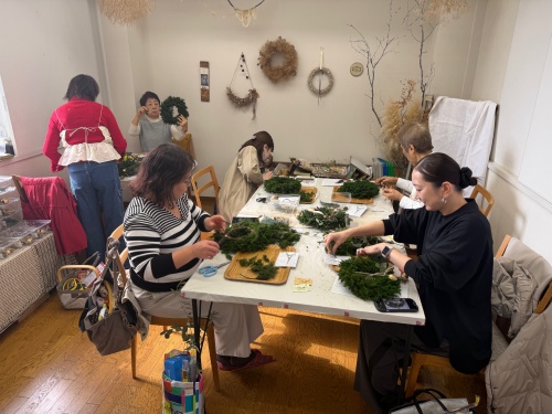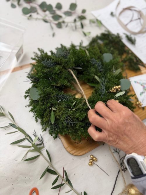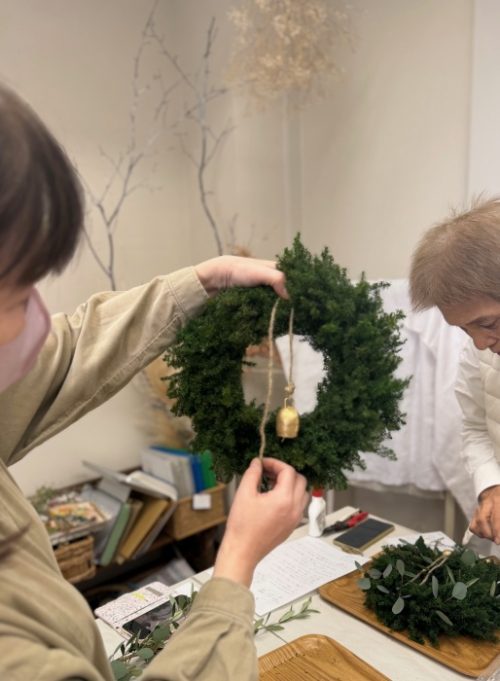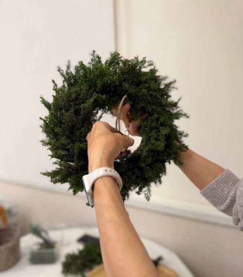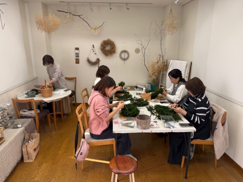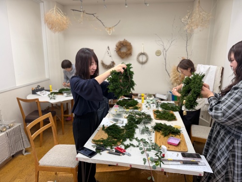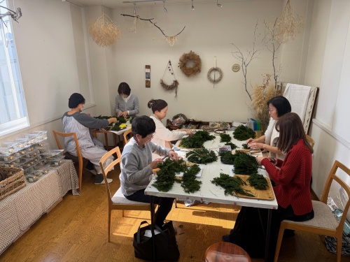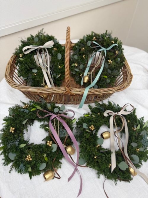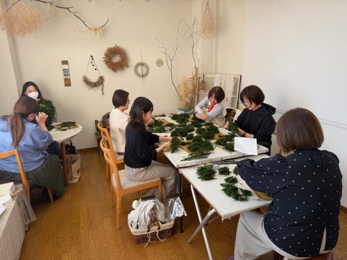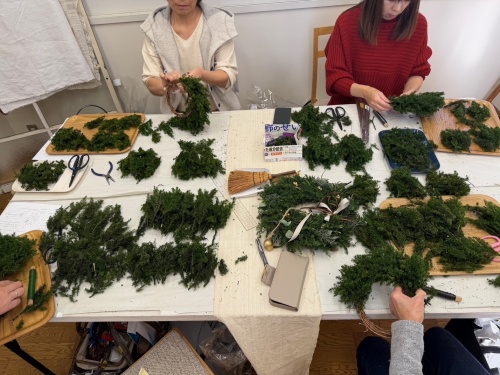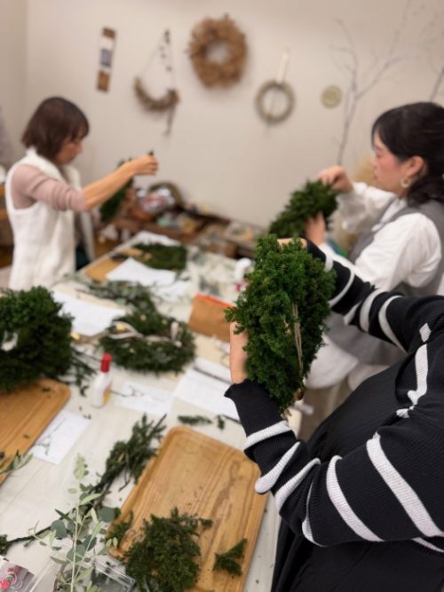 巻き巻きして作るリースは、分量感が難しいのが難点ですが