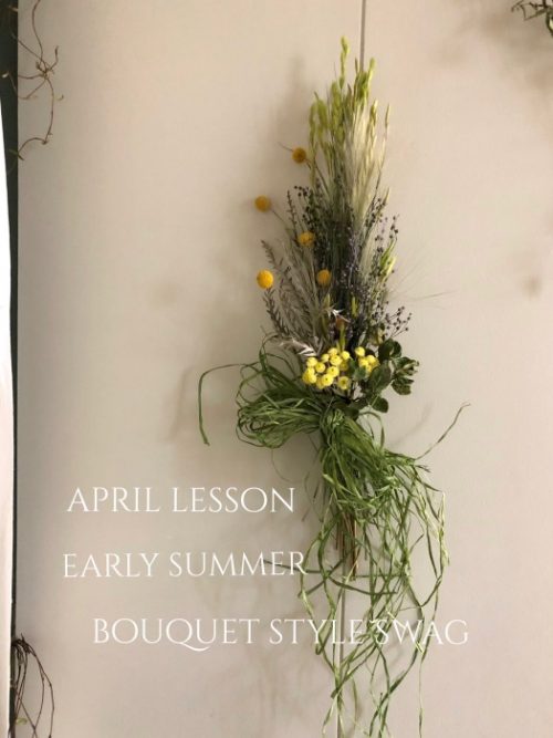 見本もあるし、束ねるだけだから簡単そうだけど、あなどるなかれスワッグやブーケって案外難しいです。