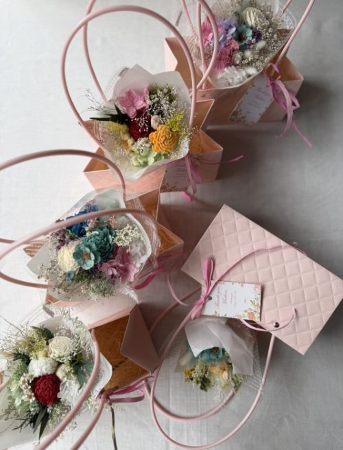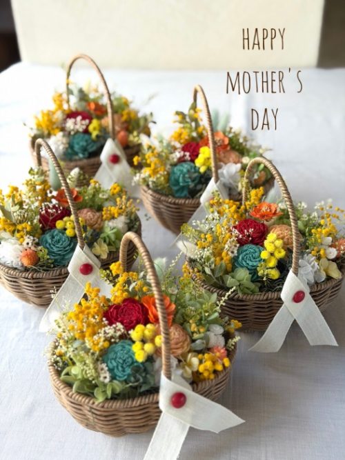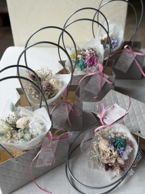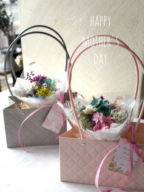 お母様の好みに合わせてブーケを選んでください。ブーケのお値段はまちまちです。