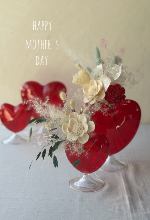 ◾️赤いハートガラスにブーケ