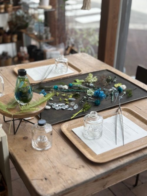 ジルの店内で、ハーバリウムのワークショップ(製作体験)