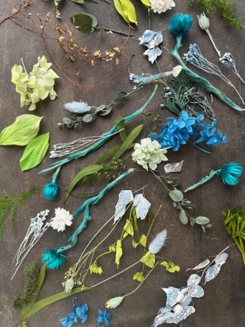 お好みの花だけをセレクトしてボトルに入れていきます。