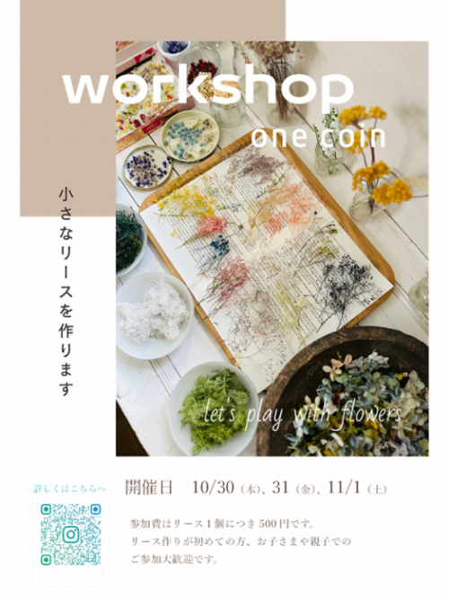 ワンコインで体験「小さなリース作り」開催します!